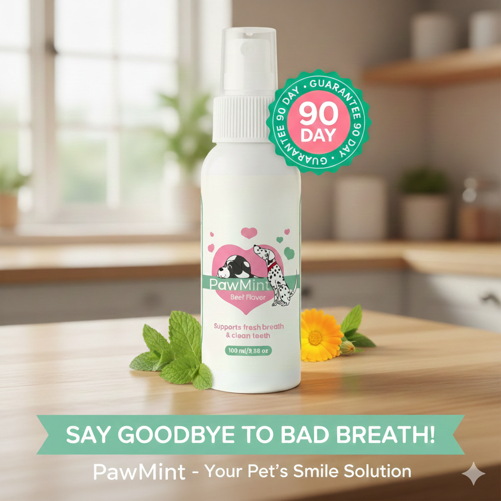 Give your dog fresh breath and a happy smile with Paw Mint – the ultimate dog breath spray! 🌿